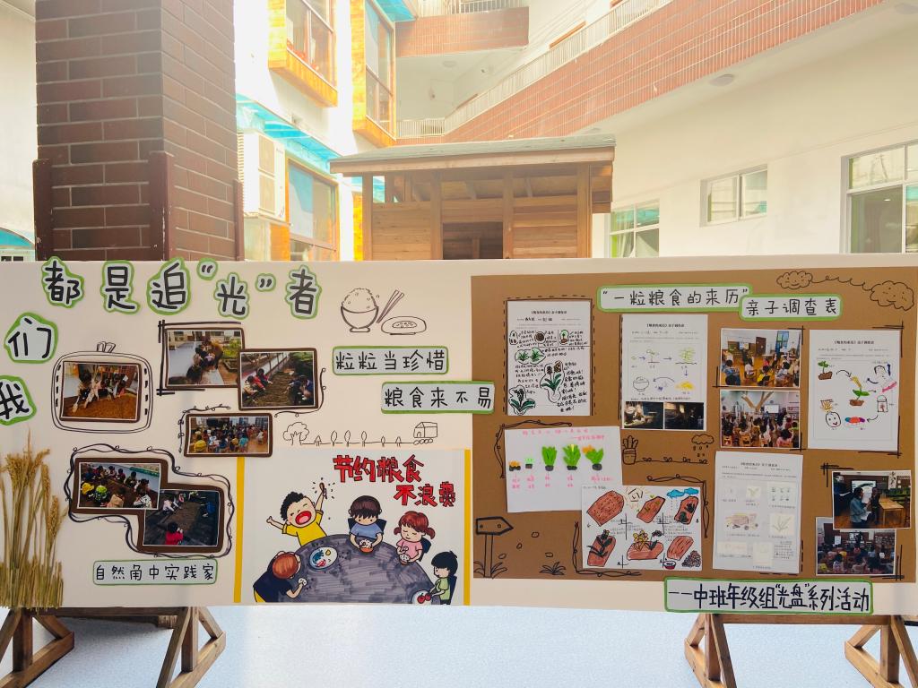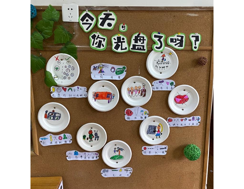 幼儿园随处可见的展板和宣传墙,营造了丰富的校园文化氛围。全体教职工参与到活动的策划、组织及执行的过程中,幼儿主题教育将“光盘行动”分年级进行主题教学策划。食堂则根据营养搭配菜品,严格食品卫生安全,包括班级送餐剩余返回登记表,将厉行节约反对浪费表现纳入班级考核评价的重要参考。