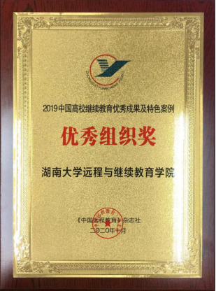 10月30日至31日,由中国教育学会、中国高等教育学会、中国继续工程教育协会、中国成人教育协会、中国教育技术协会、全国高校现代远程教育协作组、国家开放大学指导,《中国远程教育》杂志社主办的“2020(第十九届)中国远程教育大会”在北京举行。湖南大学远程与继续教育学院获评中国高校继续教育优秀成果及特色案例“优秀组织奖”。湖南大学作为试点高校,选送的案例《打造创优项目 实现‘三项融合’——湖南大学军转干部专项培训工作探索与实践》入选中国高校继续教育优秀成果案例库。