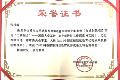△“2019中国高校继续教育优秀成果及特色案例奖”获奖证书